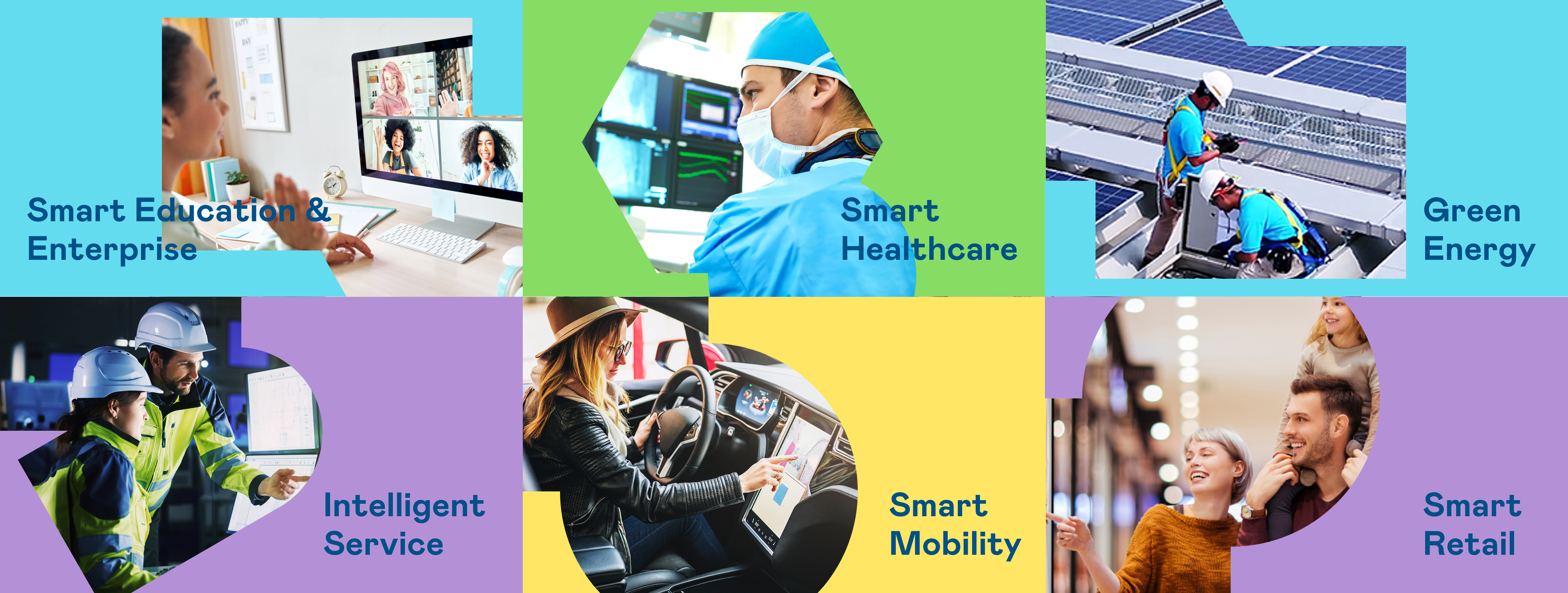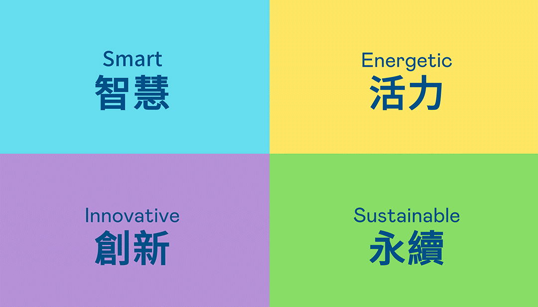 | 从稳重、信赖的德晋贵宾厅蓝开创新色彩,注入象征智慧蓝、活力黄、创新紫、永续绿的品牌色及动态多变的几何图形,呼应不设限的「Possibilities」精神,代表多元的专业技术及领域,在碰撞中相互触动、融合、延伸,持续激荡出更多新的可能性。 |